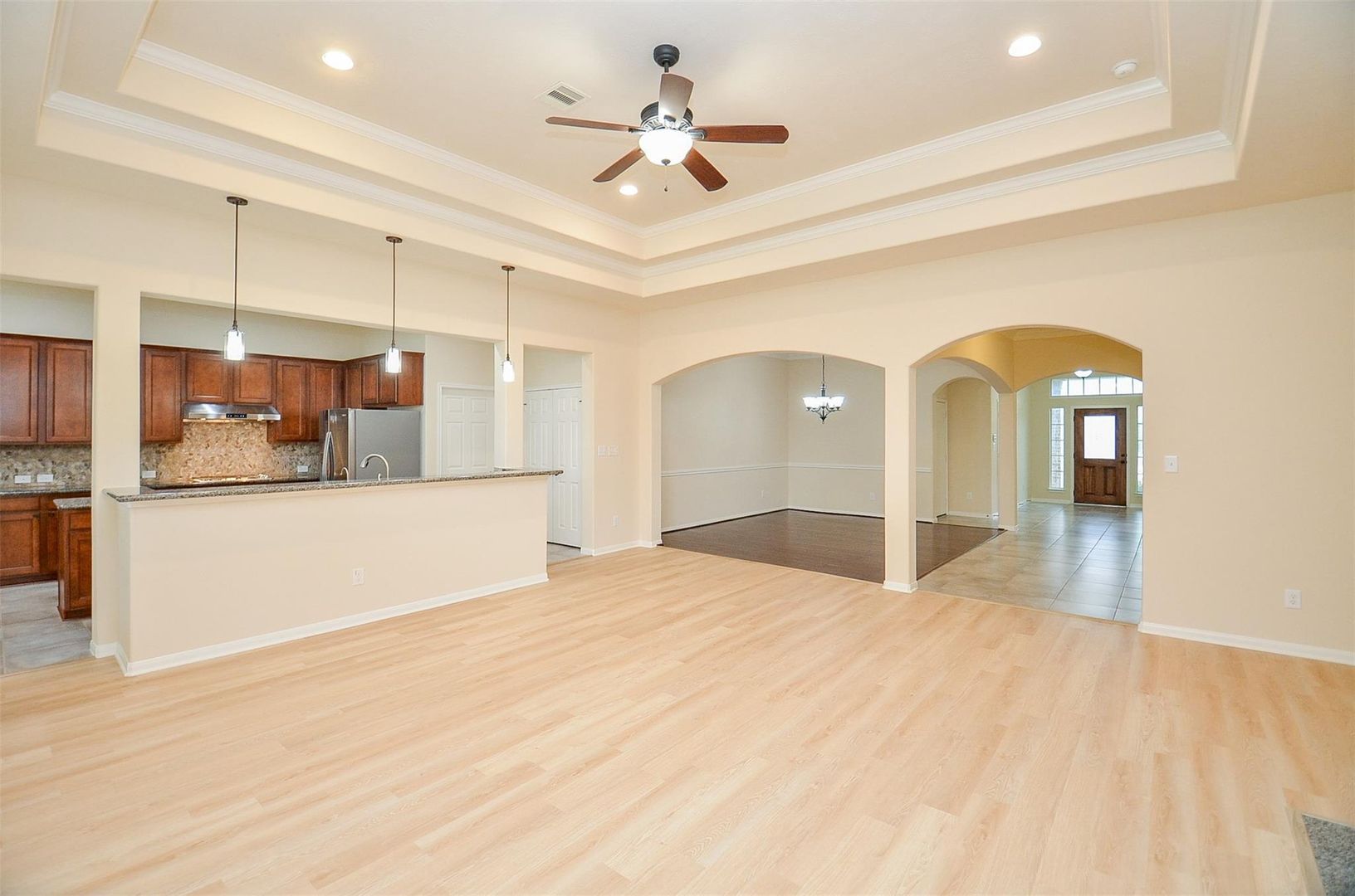 Beautiful executive family home is ready for immediate move-in. Owner has updated the home with new flooring and interior paint. Spacious floor plan is perfect for entertaining and relaxing with friends and family. Huge family room has a gas log fireplace and HDMI hookup for your TV. Breakfast bar, upgraded cabinetry, and SS appliances in the gourmet kitchen. Gas cooktop, undermount SS sink, and custom backsplash finish the look. Hardwood flooring in the large dining area. Huge primary bedroom with en-suite bath. Split plan with three guest bedrooms and a full guest bath on the front side of the home. Lots of windows bring abundant natural light thru-out. Three-bay tandem garage is always a plus. Covered rear patio area and large backyard greenspace. Silver Ranch neighborhood amenities are excellent. Exemplary Katy schools are second to none. Conveniently located near major commuter routes into town. Come home to Silver Ranch!